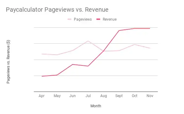 - Durch Robs anfängliche Integration der Fuse- Tags von Publift erzielte Paycalculator eine Steigerung der monatlichen Werbeeinnahmen von 335 %, sodass Rob seinen Vollzeitjob aufgeben konnte, um sich ausschließlich auf die Entwicklung seiner Website zu konzentrieren.