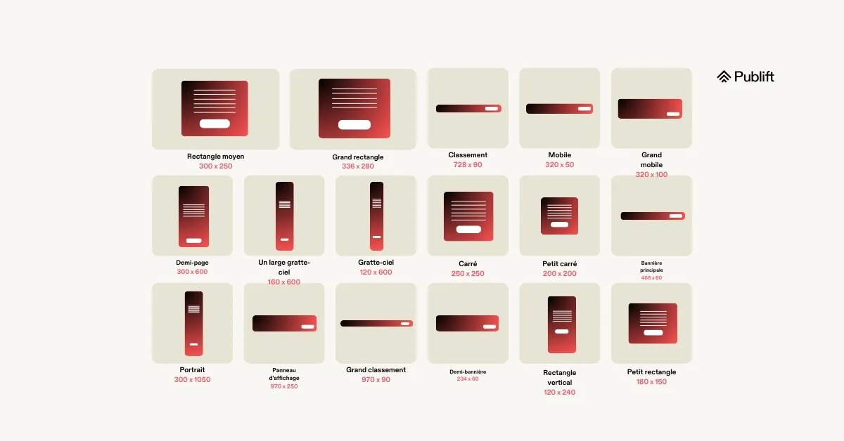 Voici les formats de bannières publicitaires les plus courants pour 2026 :