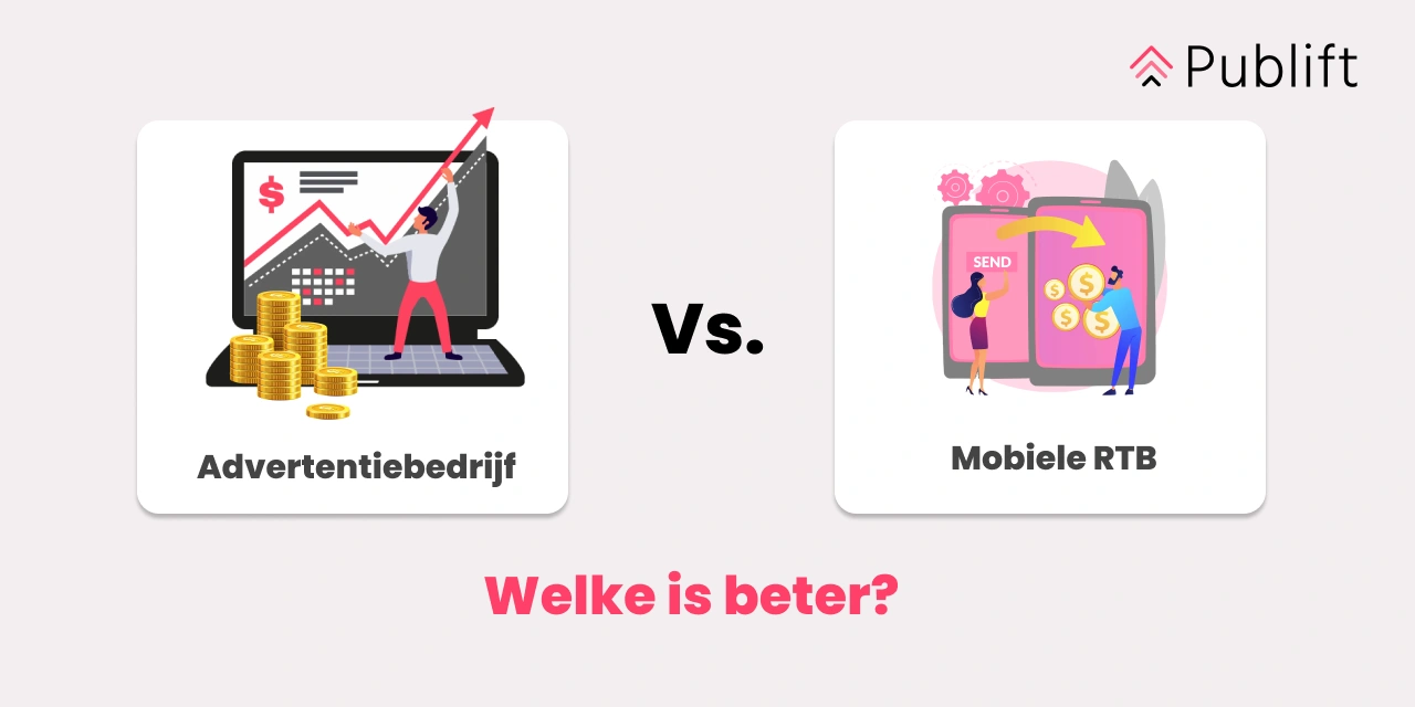 Als je advertentiebemiddeling vergelijkt met RTB Mobile, zit het verschil in de aanpak. Advertentiebemiddeling houdt in dat je via een platform zoekt naar advertentienetwerken van de hoogste kwaliteit bij het aanbieden van advertentieruimte aan meerdere kanalen. Dit vergroot de kans dat uitgevers hun advertentieruimte vullen met de meest geschikte advertenties. De focus ligt op hoe je de ruimte kunt vullen met de beste advertentie.